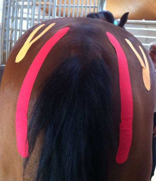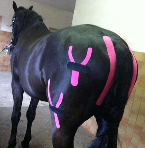 Entwicklung seit 2007 am Pferd - Bestimmt haben Sie schon Sportler gesehen, die sogar im Wettkampf sog. physiologische Tapes trugen. Auch auf den Knien von Fußballspielern sind Tapes seit vielen Jahren ein bekanntes Bild. Die nach den Regeln der Farblicht-Therapie eingefärbten Baumwolltapes werden in der Physiotherapie für Menschen bereits seit vielen Jahren bei unterschiedlichsten Verletzungen, Verspannungen und zur Korrektur von Haltungsfehlern angewendet. Seit 2007 wird die Methode auch bei der Therapie von Pferden, Kühen und Hunden eingesetzt*.